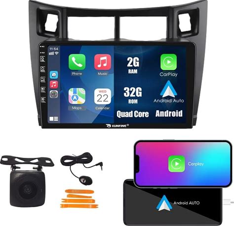 Kunfine Carplay Android Auto Navigation Stereo GPS Radio Reverse Camera Display 9" IPS Touchscreen Headunit Tablet Media Player For Toyota Yaris 2005-2013, If Applicable Quad Core 2G+32G