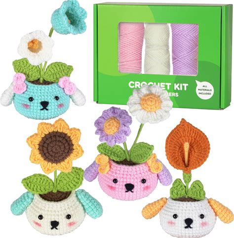 OLHKYN 6Pcs Crochet Kit For Beginners, 2026 DIY Craft For Adults, Great Gift For Crochet Lovers, Crocheting Animal Kits With Step By Step Videos,Yarn,