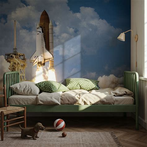 Wall Mural - To Space And Beyond - Astronauts & Shuttles Vehicles Mural Wallpaper - Living Room - Wallism US - Premium, Textured Or Peel & Stick