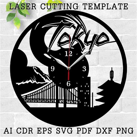 Tokyo Wall Clock Laser Cut Files, SVG File. Vector File Ai, Cdr, Dxf Instant Download Digital Design, Cut File Template Japanese Clock City