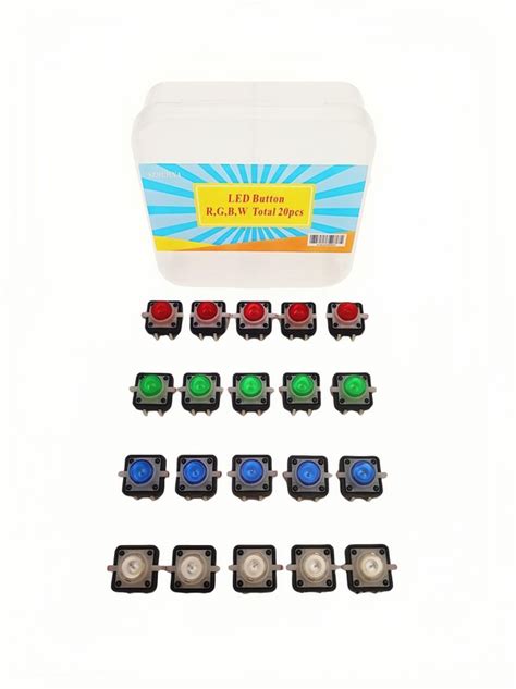 SZBUHNA 3.3V 5V PCB Mount DIP Illuminated Momentary Tactile Push Button Switch With LED Light 20Pcs 12×12mm 4 Colors For Arduino/Sparkfun/Littlebits/