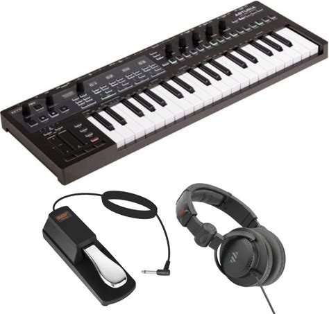Arturia 37-Key Keysteppro Sequencer USB/MIDI/CV Keyboard Controller, With Aftertouch Keystep Pro With V-Moda Forza In-Ear Hybrid Sport Headphones And Gravity Phone Holder Bundle PK1