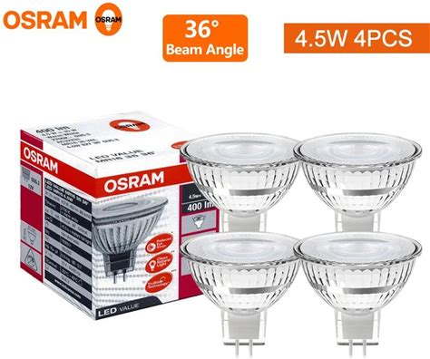 4Pcs For OSRAM LED Value MR16 4.5W 12V GU5.3 Base 36 Degree 2700K Warm White Low-Voltage LED